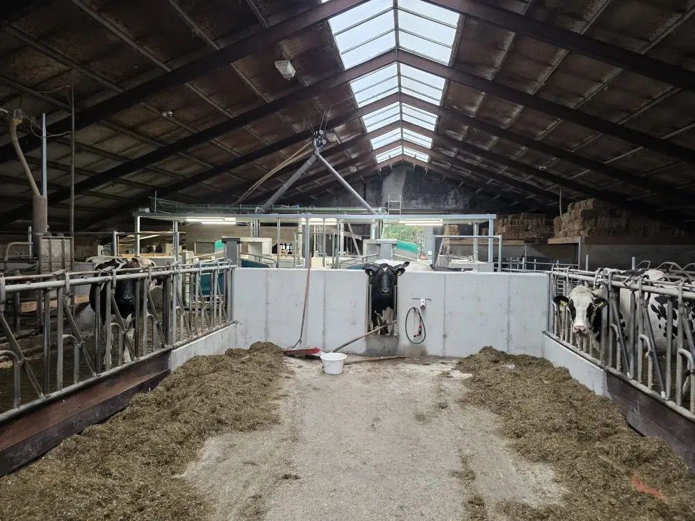 Henkjan en Rick zijn ook positief over Farmonie FarmTech. "Het verliep vlekkeloos. De begeleiding is precies wat we ervan verwacht hadden. We zijn er blij mee." Een groot voordeel was dat de verbouwing, die van juni tot september duurde, geen onderbreking van de melkproductie betekende. "We konden de hele tijd gewoon doormelken in de oude stal. De nieuwe robots zijn direct op de juiste plek geplaatst, de oude melkstal wordt een strohok.’’